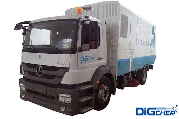 第一代德高潔公鐵兩用軌道清潔車是在梅賽德斯-奔馳Axor1829 4×2二類卡車底盤上安裝相關(guān)裝置而構(gòu)成的,而最新一代軌道清洗車選用的是奔馳烏尼莫克U400卡車底盤(如下圖)。